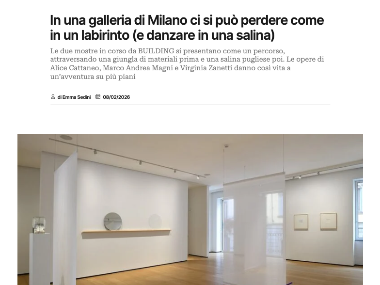BUILDING BOX presenta Per filo e per segno. Percorsi di arte tessile in Italia, un progetto espositivo a cura di Alberto Fiz che coinvolge, dal 15 gennaio 2026 al 6 gennaio 2027, dodici artisti italiani di generazioni differenti, invitati a riflettere sul tema del tessile contemporaneo. Nel corso del 2026, la rassegna propone, in dodici appuntamenti individuali a cadenza mensile, una selezione di arazzi, abiti, installazioni, sculture e lavori site-specific.