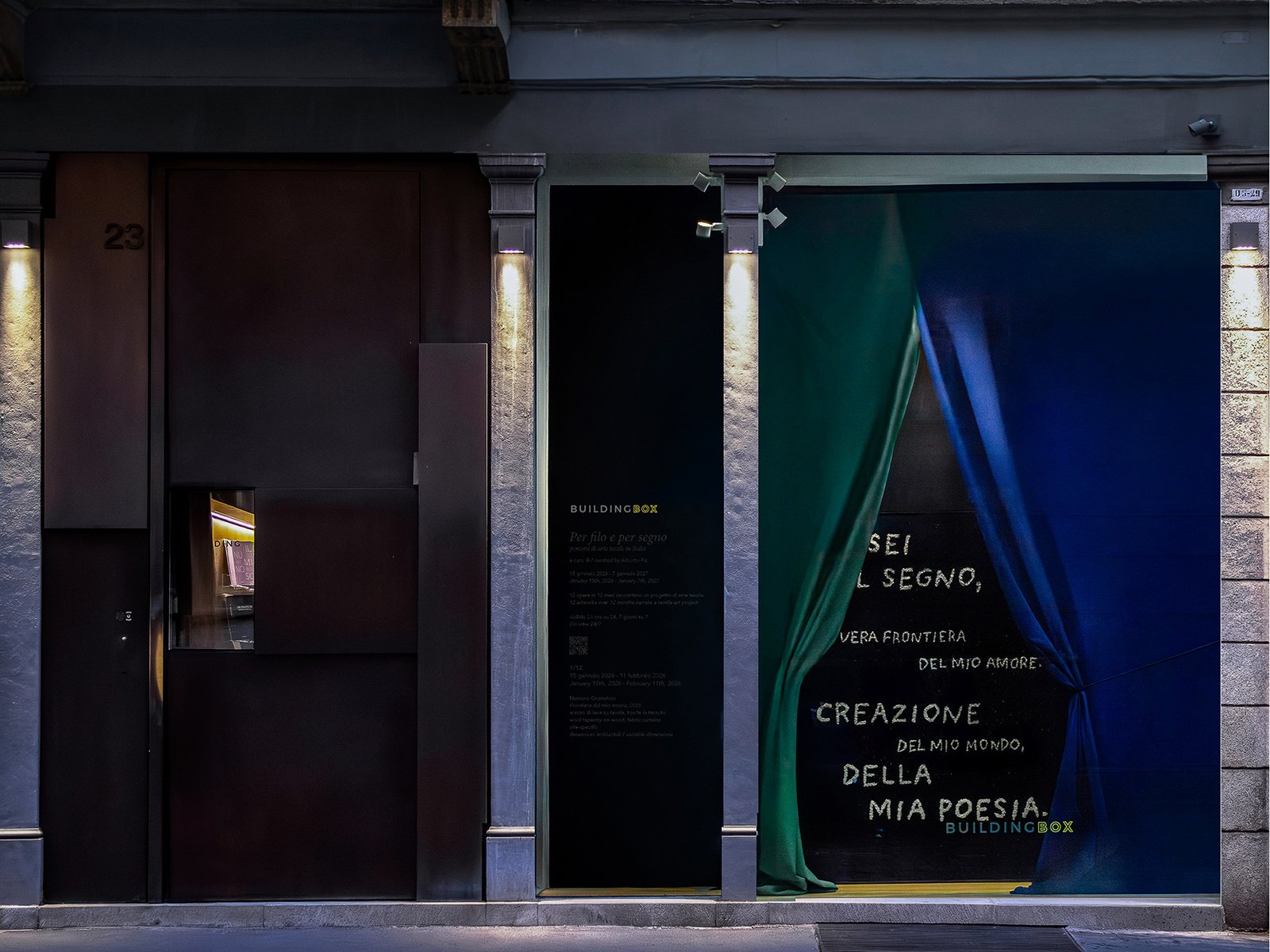 Dal 15 gennaio 2026 all’11 febbraio 2026, BUILDING BOX ospita la prima installazione dell’esposizione: Frontiera del mio amore (2025) del collettivo artistico Numero Cromatico (Roma, 2011).
