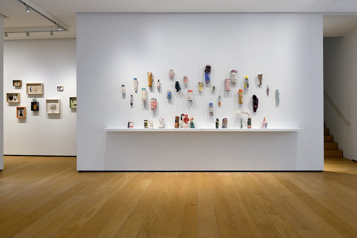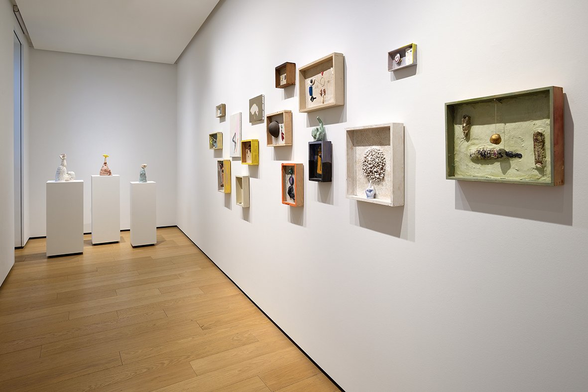 On the first floor of BUILDING GALLERY, the mythological dimension confronts the hyper-consumerist and technological dimension of the present: in a sort of arena, several large ceramic sculptures with overlapping elements—including The Siren (2024) inspired by the literature of Tomasi di Lampedusa or L’Asino Rosa – Omaggio a Dioniso (2025), inspired by Greek mythology—interact with the large triptych The Artsphere in the Age of Amazonization (2021-2022), which features an all-seeing box, a symbol of both e-commerce and mass surveillance. The exhibition continues with an installation composed of numerous ceramic mask sculptures entitled The Debt to Human Guile (2024)—a tribute to Paul Laurence Dunbar’s poem We wear the mask (1896) – which introduces the space dedicated to memory with the entire cycle of Memory Boxes (2013-2024).