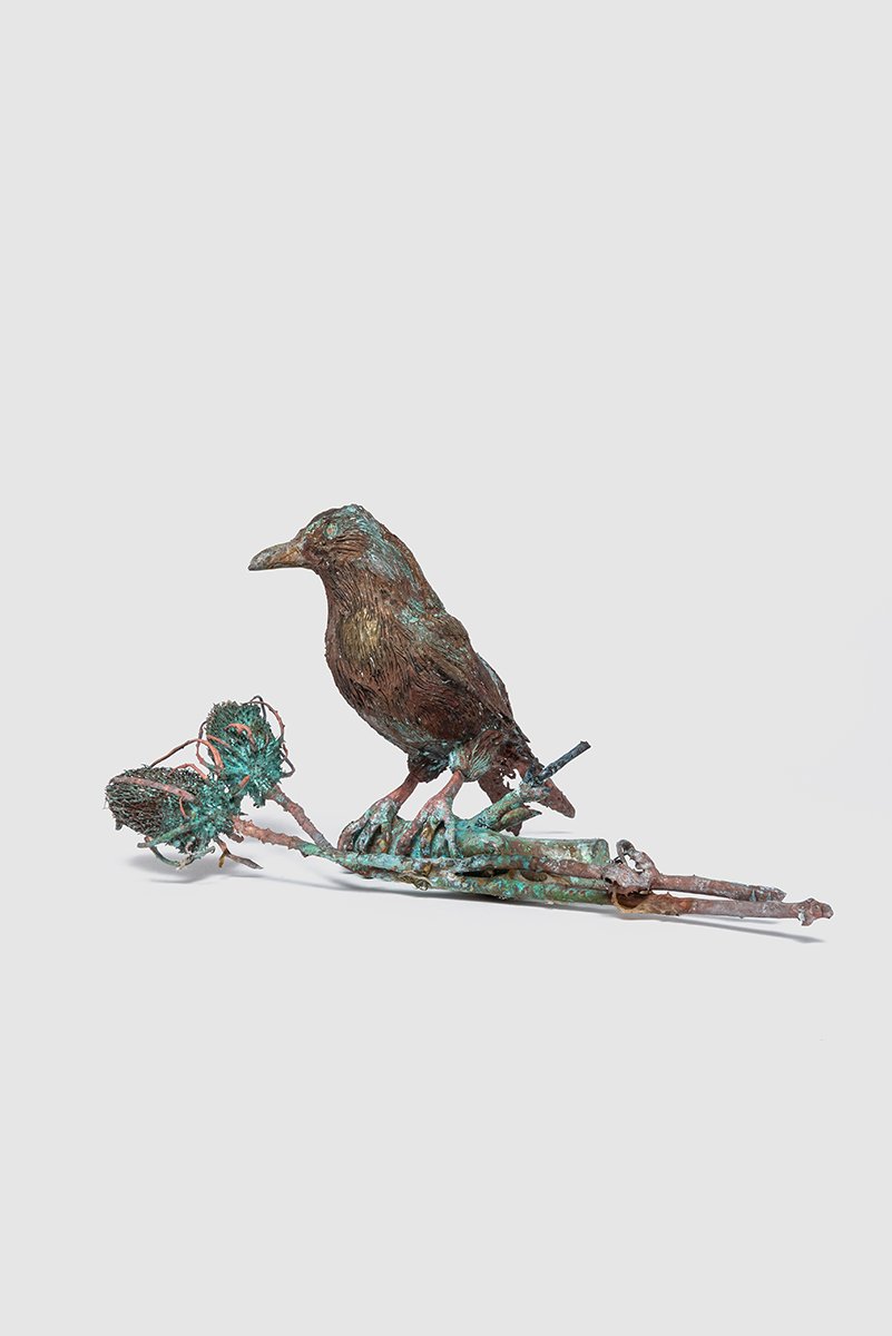 As a further tribute to Raphael, recalling the Madonna of the Goldfinch, Cotognini also brings two sculptural installations to the house: a group of Hybridatio Mundi – bronze birds perched on a railing – and a skull with a bird in its mouth, in memory of the enigma linked to the cast of the Master’s skull.