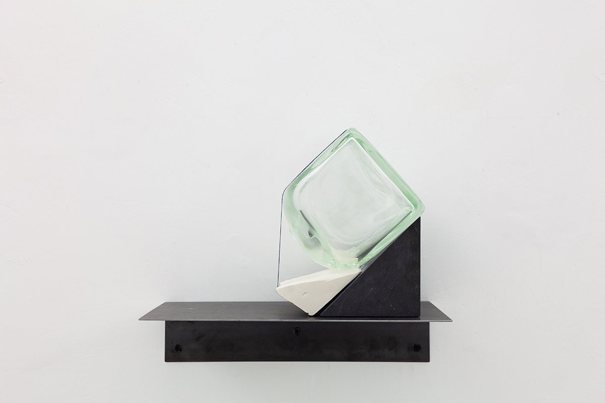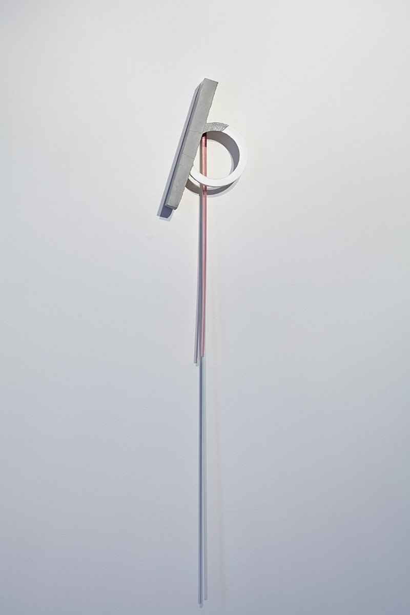 Al piano terra di BUILDING GALLERY, le opere mantengono un dialogo nella sospensione, senza mai esaurirsi le une nelle altre. È un concetto che si ripete: accettare l’opacità e l’apertura del mondo significa riconoscere ogni potenziale molteplicità, valorizzandone ogni piccola differenza. Nel caso della superficie di Millebolle (2025), è possibile leggere il compimento del destino originale di un materiale. Il pluriball, di fatto, è nato come un’antica alternativa alla carta da parati, trasparente ed effimera. Una trama che custodisce il ricordo di un ricamo, un motivo ripetuto che può avvolgere uno spazio e trasformarlo. All’interno delle nicchie agli estremi del piano terra sono installate altre due opere, poli di un’ultima tensione nascosta e quasi magnetica. In una, Untitled (2018) di Alice Cattaneo, nell’altra, il terzo esemplare di Ruffiani (2025) di Marco Andrea Magni. Opere all’opposto, molto diverse tra loro ma che riescono ad esprimere la stessa profonda cura nella scelta dei materiali. Le due formano una punteggiatura sospesa: da una parte una forma di cemento al cui interno sono stati inseriti un cerchio di porcellana, della filigrana di vetro rosa e una linea di vetroresina; dall’altra, una nuova esplorazione fatta di vetro trasparente, passepartout e legno da cornice. Due pensieri marginali che all’interno di uno spazio più raccolto trovano la loro dimensione e diventano protagoniste riuscendo a guardare il resto del mondo “sotto gli occhi degli altri”.